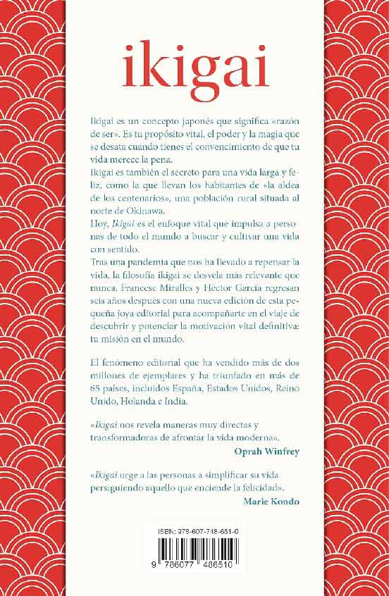 Inspirado en la filosofía japonesa, Ikigai explora la idea de que todas las personas poseen un propósito que da sentido a su vida. A partir de su investigación en Okinawa, la región con mayor longevidad del mundo, los autores Héctor García y Francesc Miralles recopilan las enseñanzas, hábitos y reflexiones de quienes han descubierto el secreto para vivir más y mejor. A través de historias reales, conceptos de la cultura japonesa y consejos prácticos, este libro invita al lector a encontrar su propio ikigai: esa pasión o razón de ser que aporta felicidad, equilibrio y significado a cada día.