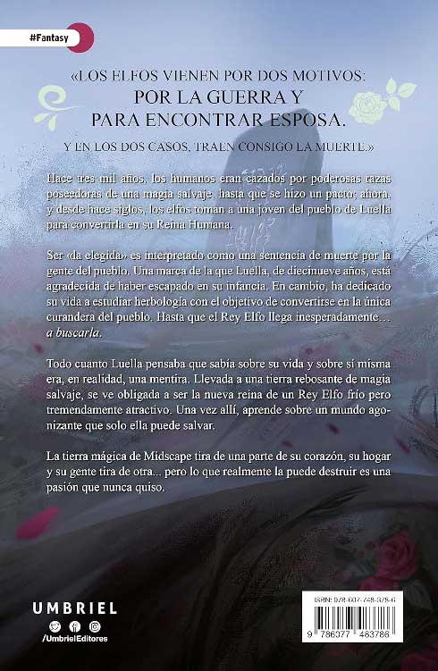 En un mundo marcado por un antiguo pacto que salvó a la humanidad de la extinción a manos de razas dotadas de magia salvaje, la aparente tranquilidad de Capton se sostiene sobre el sacrificio de una joven destinada a convertirse en reina de los elfos. Luella, quien creció creyéndose a salvo de ese destino, ha dedicado su vida a sanar a otros hasta que su realidad se quiebra cuando el Rey Elfo llega a reclamarla. Arrancada de todo lo que conoce, es llevada a Midscape, un reino tan fascinante como moribundo, donde descubre que su pasado está construido sobre mentiras y que su papel es mucho más crucial de lo que imaginaba. Obligada a asumir un rol que nunca eligió, deberá enfrentarse a decisiones imposibles que pondrán en juego no solo el destino de una tierra al borde del colapso, sino también sus propios sentimientos, al verse atrapada entre la lealtad a su hogar y un amor inesperado que podría cambiarlo todo.